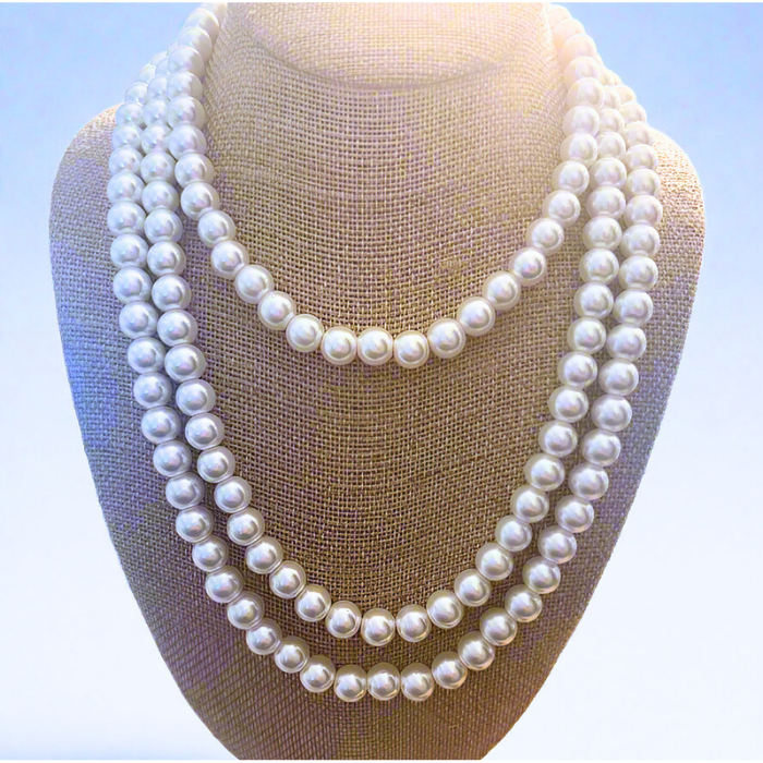 Prepare to be captivated by the impressive and contemporary design of the Classic 3 Strand White Glass Pearl Necklace. Its durable construction ensures longevity, allowing you to cherish this piece for years to come.