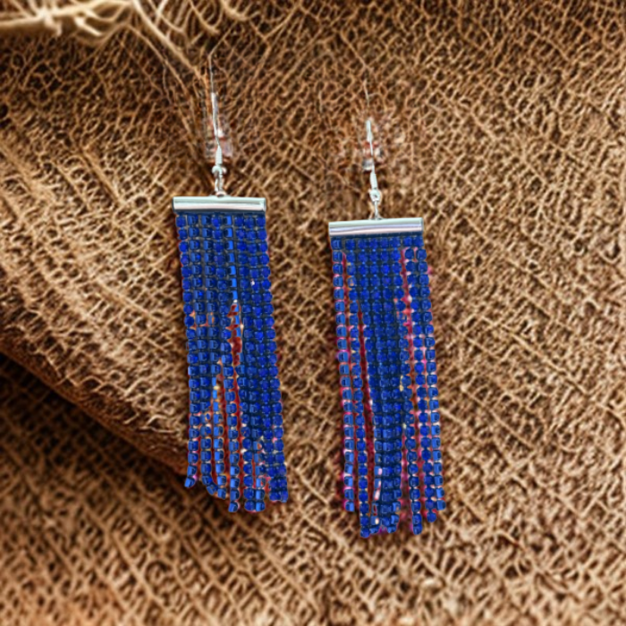 These Rhinestone Crystal Drop Earrings from Peace N Beads are a true statement piece. Blue rhinestones catch the light and shimmer with every movement. Each pair is handcrafted, showing off the unique touch of Peace N Beads artisans. Attention to detail ensures a polished look and lasting shine.