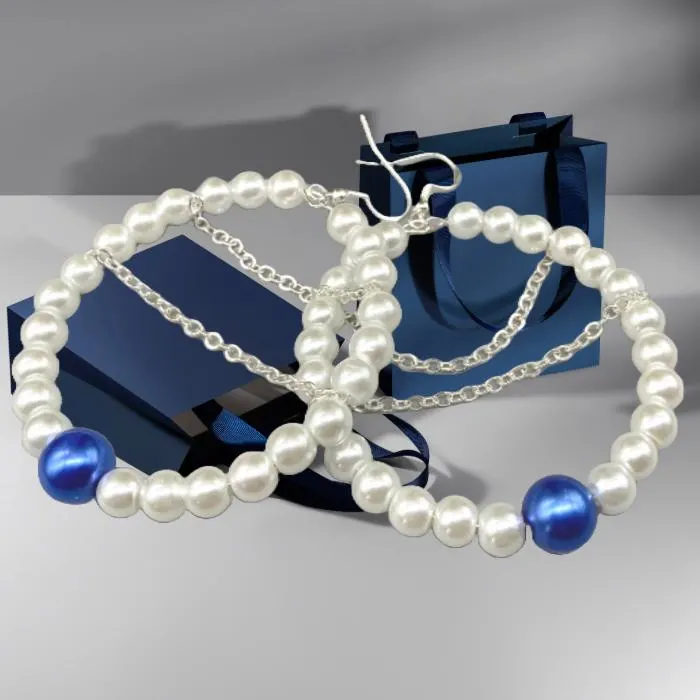 Introducing our exquisite White and Royal Blue Glass Pearl Hoops—a perfect blend of elegance and sophistication. These timeless accessories are designed to elevate any ensemble, making you the center of attention wherever you go.